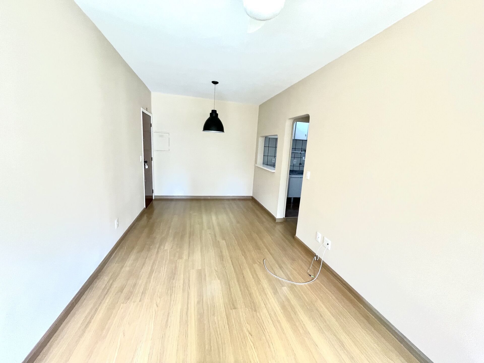 O piso laminado confere um toque de aconchego aos ambientes, e a cozinha integrada à sala é um convite para momentos de confraternização com amigos e familiares.