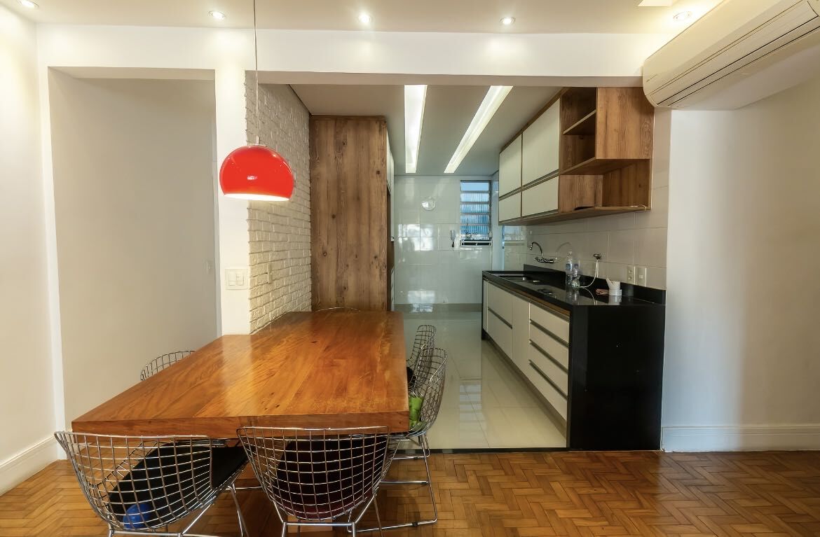 Living amplo, 3 dormitórios (1 suíte), ar condicionado, aquecimento a gás e portaria 24h.
