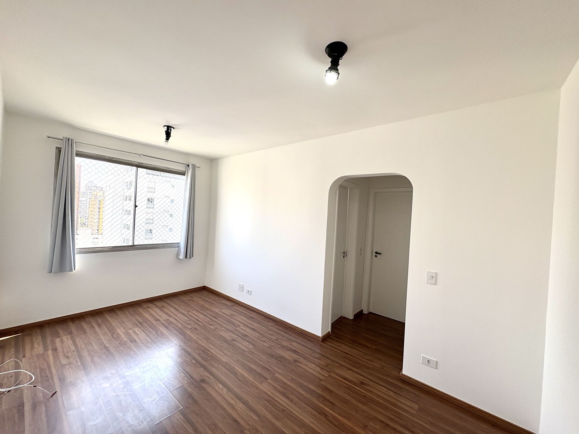 Com 45m², possui 1 dormitório, banheiro, social e de serviço (diferencial), andar alto de frente para a rua, e excelente iluminação natural, com ambientes bem ensolarados.